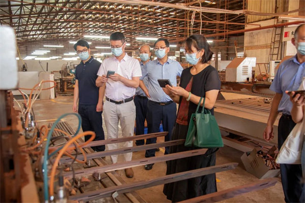 接著,調(diào)研團(tuán)還參觀了大涌標(biāo)準(zhǔn)化生產(chǎn)基地,張奕海總經(jīng)理深入而具體地向調(diào)研團(tuán)介紹了各種紅木家具品類、紅木家具工藝流程以及日常生產(chǎn)管理等。在生產(chǎn)車間里,調(diào)研團(tuán)一行認(rèn)真聽取了紅木家具加工生產(chǎn)流程的詳細(xì)解說,并仔細(xì)查看每一個(gè)生產(chǎn)環(huán)節(jié)。在形象生動(dòng)的講解中,調(diào)研團(tuán)饒有興趣地體驗(yàn)了具有深厚文化意蘊(yùn)的紅木家具文化,體會(huì)了中國(guó)傳統(tǒng)工藝中蘊(yùn)含的蕙質(zhì)蘭心與人文情懷,親自感受到了現(xiàn)代科技在紅木家具行業(yè)的應(yīng)用。紅木技藝在傳承的同時(shí),也因?yàn)榧夹g(shù)不斷革新而有所突破,讓經(jīng)典工藝在現(xiàn)代科技手段下愈久彌新,迎合大眾的實(shí)際生活需求。