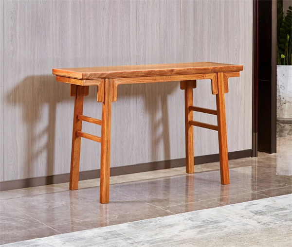 東成紅木制造的平頭案,保留傳統(tǒng)夾頭榫造法。改圓材腿足和橫棖為方材,更見(jiàn)方正;面板、牙頭、牙板光素細(xì)致,面框邊側(cè)采用雋永平服線腳,澄明清雅。擺上心愛(ài)的飾品,攤開(kāi)一本愛(ài)讀的書(shū),漸覺(jué)塵囂遠(yuǎn)遁,心曠神怡。