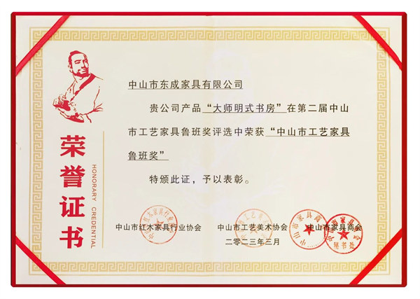 在第二屆中山市工藝家具魯班獎(jiǎng)評(píng)選中榮獲“中山市工藝家具魯班獎(jiǎng)”