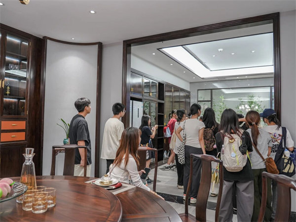 他們都是大二學(xué)子,正處于專業(yè)認(rèn)知與創(chuàng)作學(xué)習(xí)的黃金探索期,步入文化館,他們眼神中滿是對家具藝術(shù)的好奇與向往,時而俯身端詳榫卯相接的奧妙,時而輕撫木材天然的肌理,時而安然入座,親身感受家具的尺度與舒適度……每一處細(xì)節(jié)的體驗,都在無聲中拓寬著他們對“好設(shè)計”的認(rèn)知邊界。